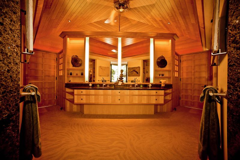 The nearly 16,000 square feet of stunning architecture blends in seamlessly with the beautiful, natural environment of Hawaii. Located throughout the 2.5 acre grounds are three ponds filled with rare breeds of vibrantly hued Koi fish, stunning sculptures to captivate the senses, four exceptionally appointed guest pod style villas, a fully equipped gym with steam room and massage room, large custom theater, game room complete with pool table and game theater, chef appointed commercial kitchen, comfortable residents kitchen with outdoor dining for up to 30 guests, as well as the most amazing spot to start and end the day – the expansive infinity edged pool with adjoining hot tub overlooking the beauty that is Hawaii.